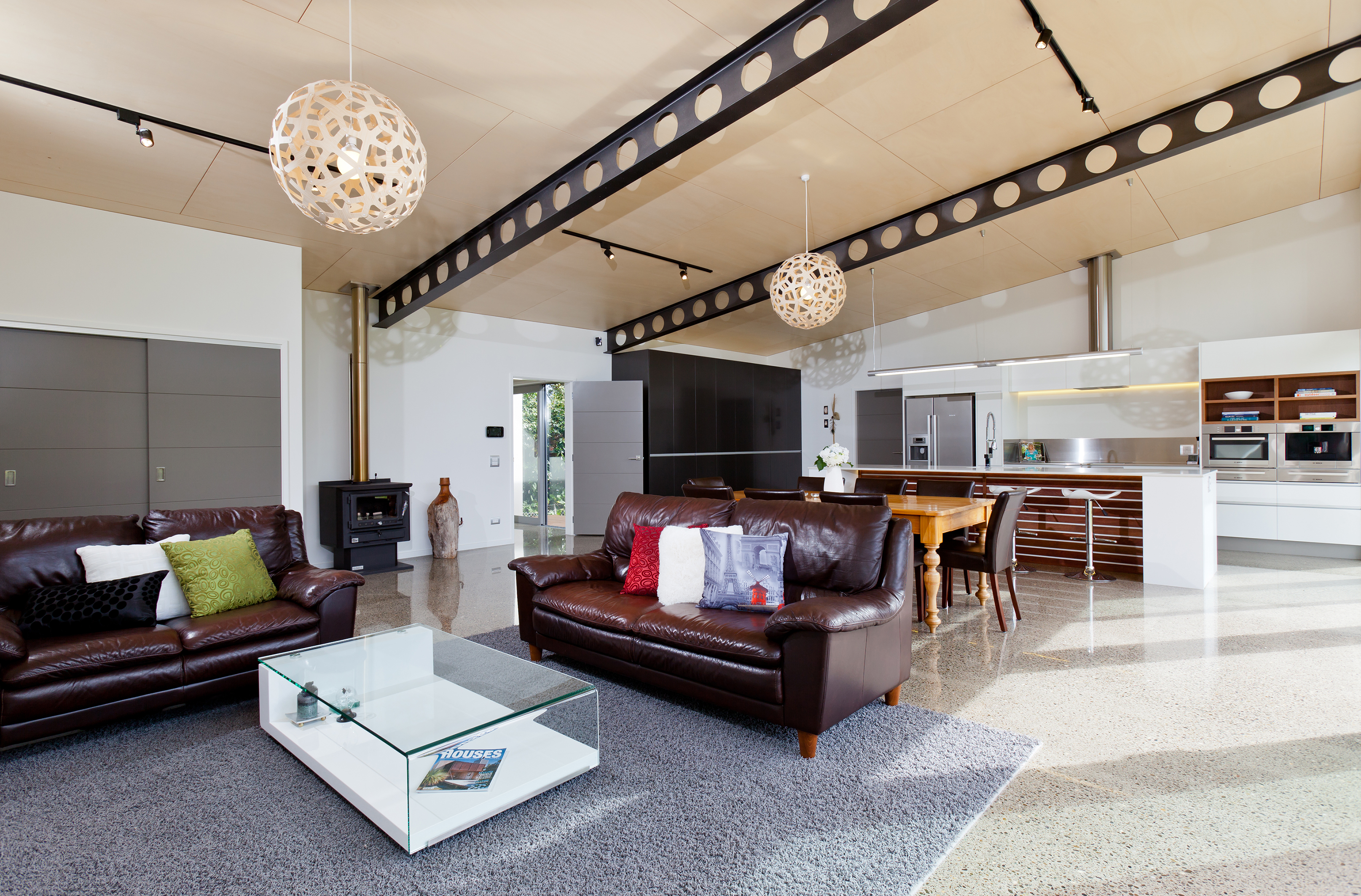 A mix of materials adds texture and interest to the interior